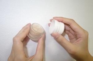 キャップを取り、パフのついた枠をはずす