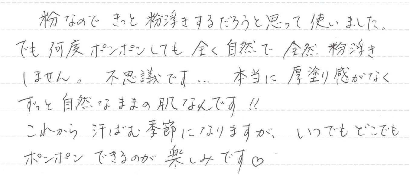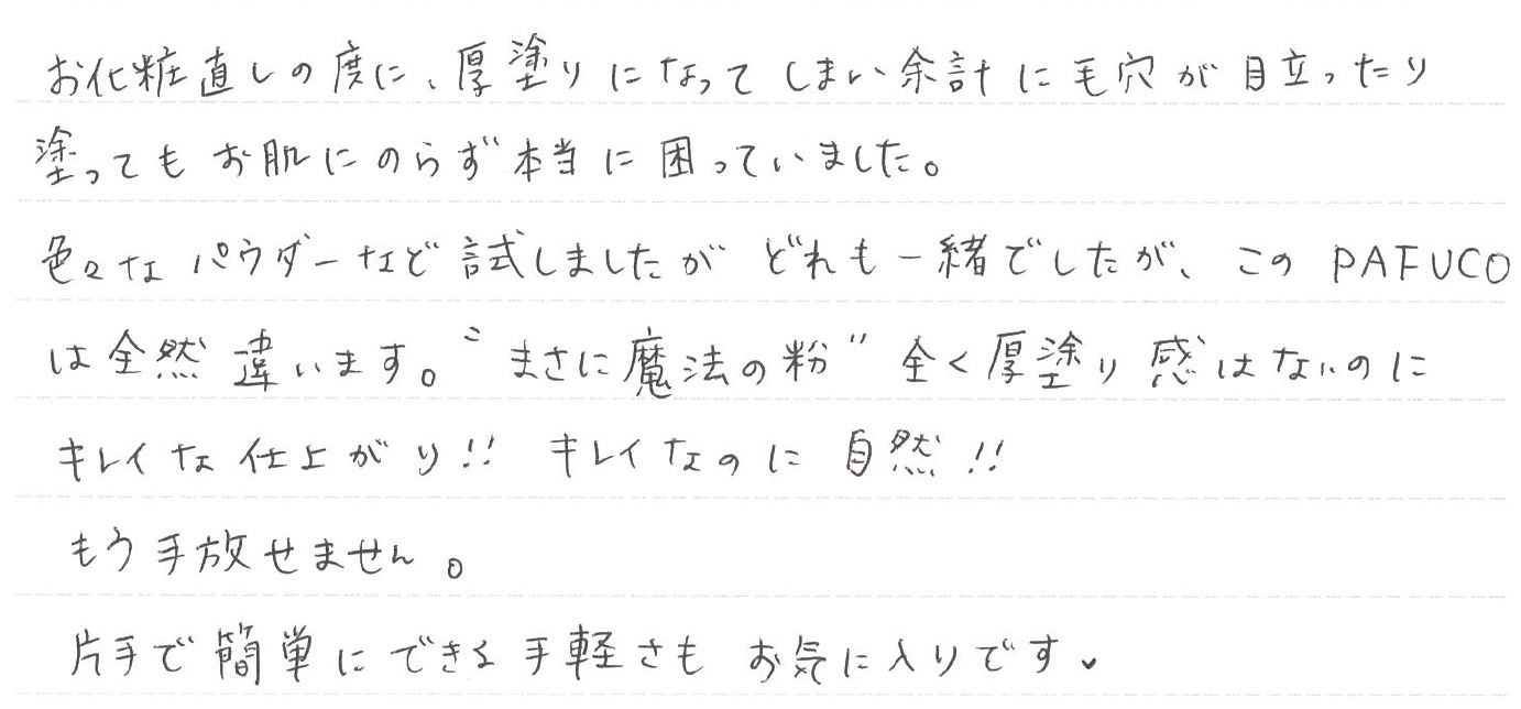 厚塗りがないこと。ムラが出ないのは、他のパウダーでは