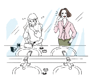 定番ですね。でも、周りの皆が化粧直しをしていると